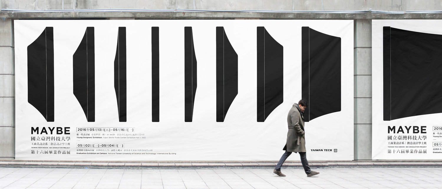 These walls symbolize challenges and obstacles that all designers face. The change in frame from the front, to the side and finally to the back denotes the design workflow: defining problems, foreseeing the problems, and solving the problems. Only when we move forward, and pass these walls can we see the whole picture, which makes MAYBE an absolute.